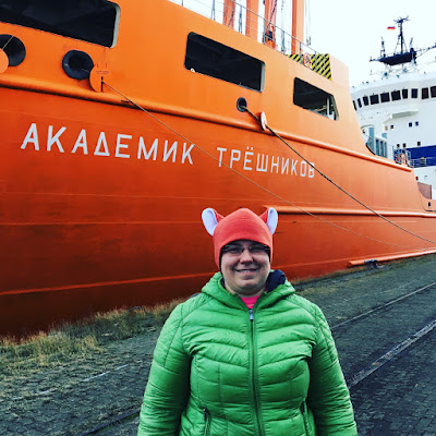 Me by the docked Akademik Tryoshnikov in Bremerhaven.