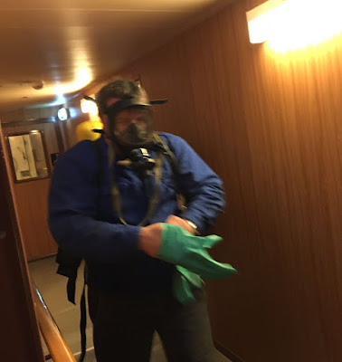 Anyhow, after I called he bridge and told them that the situation is serious, I was really surprised at their reaction. At least 8 people showed up, they brought respirators with compressed air and two guys (boatswain and Seaman) went in to clean up the spill.